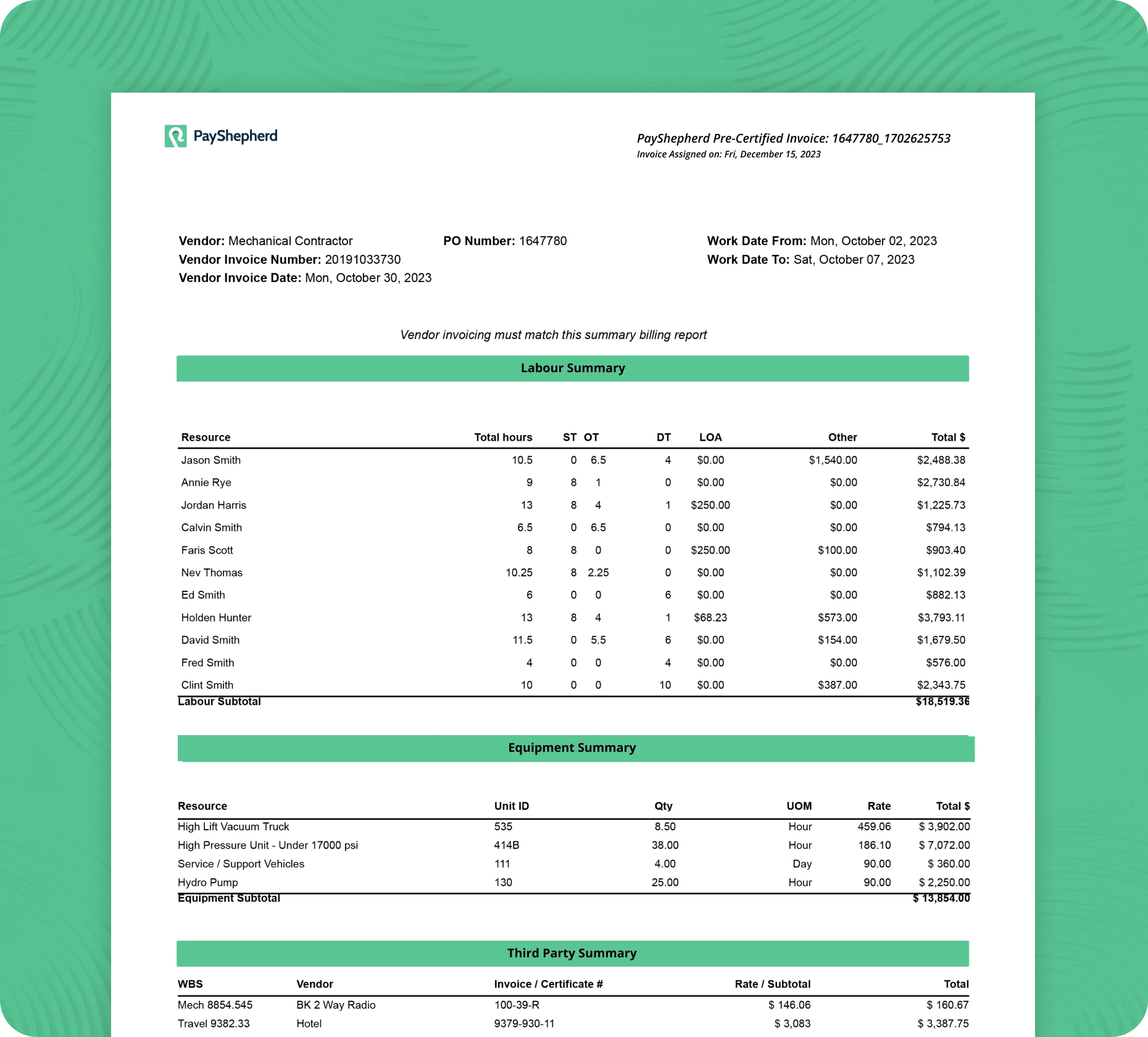 Reach a new level of clarity and confidence with the pre-certified invoices. Be assured that all the invoice backups have been verified and that contractors get paid exactly what they are owed—down to the penny.